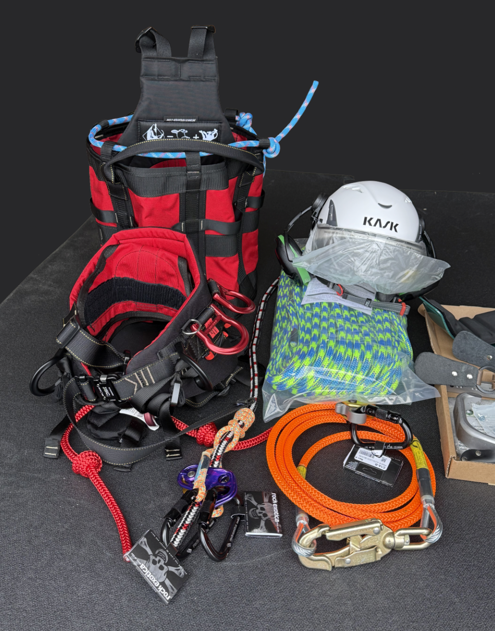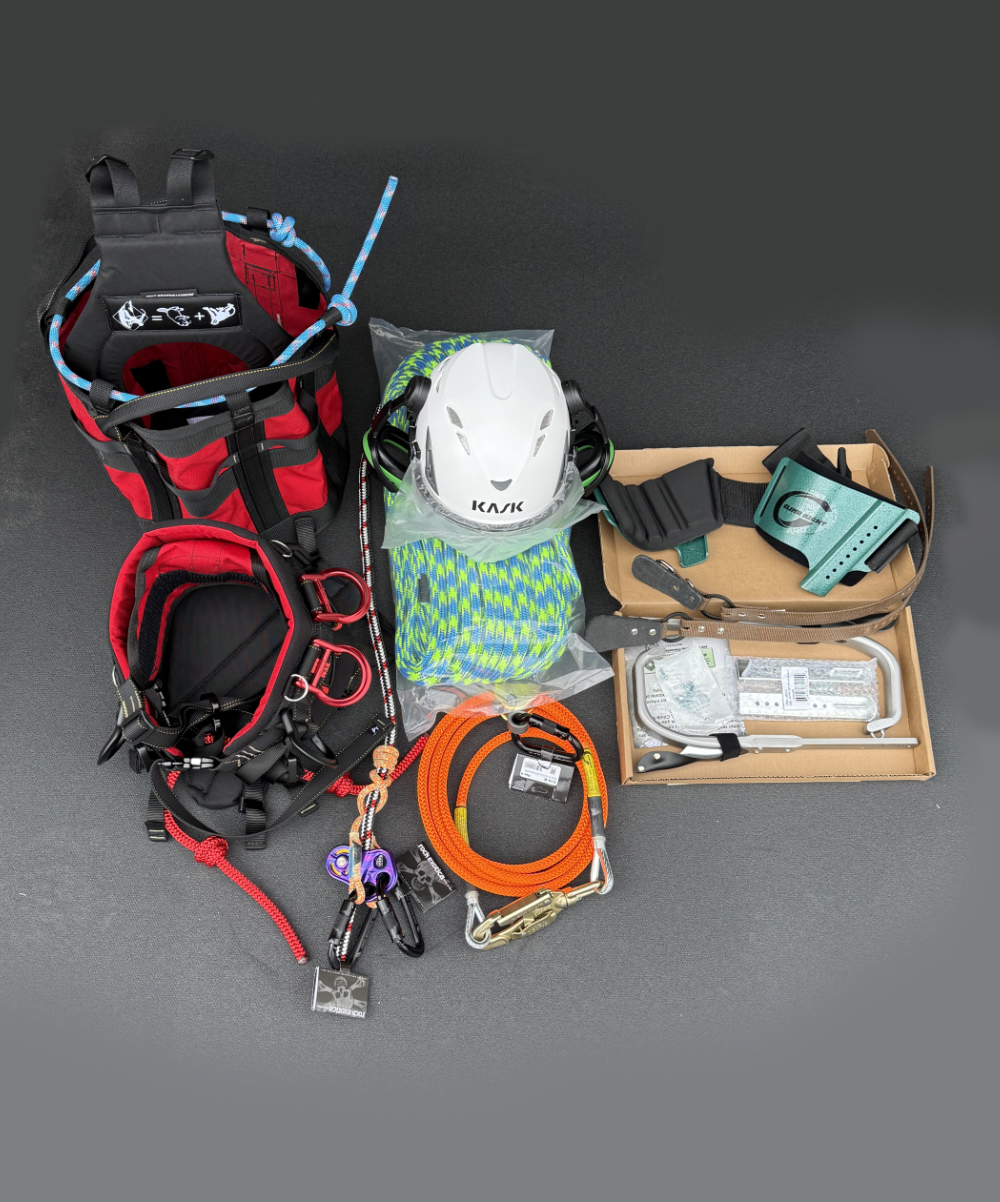 This is everything you’ll need to start climbing. Includes Saddle and Suspenders, Helmet, Flipline, Spurs, Rope, and Ascender.